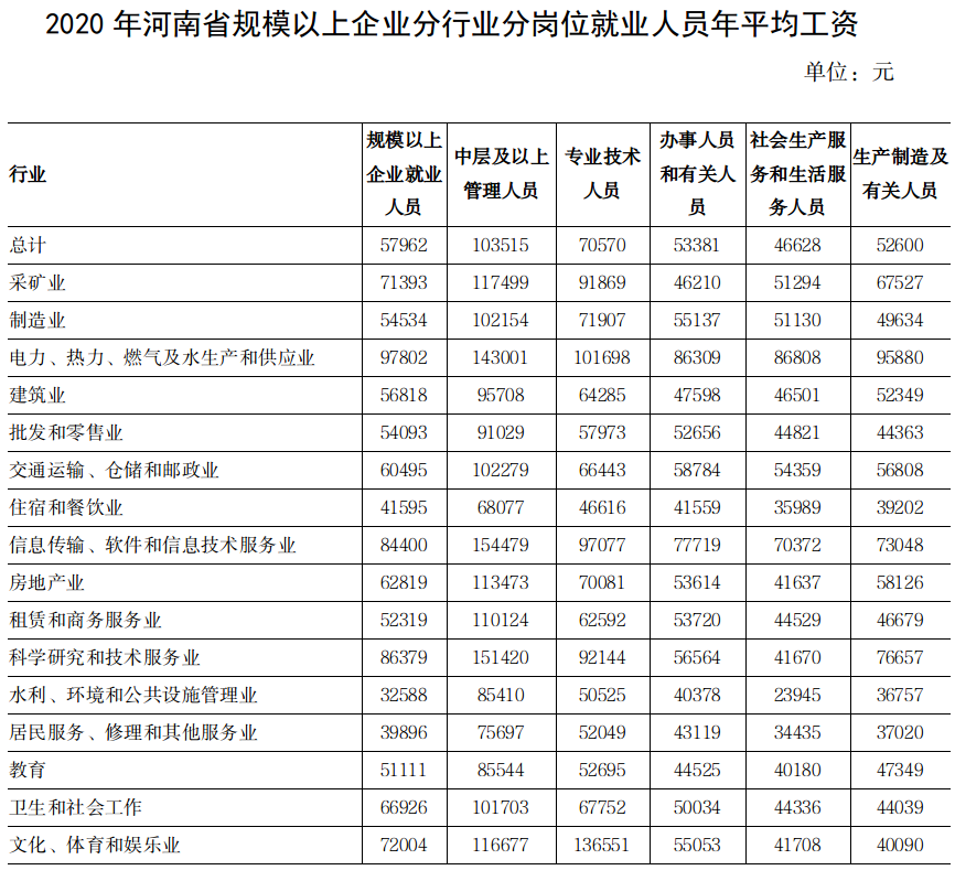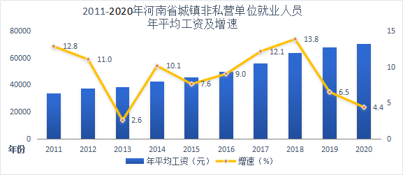 2020年河南省城鎮非私營單位就業人員年平均工資70239元