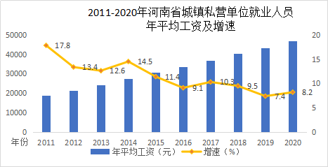2020年河南省城鎮私營單位就業人員年平均工資46733元